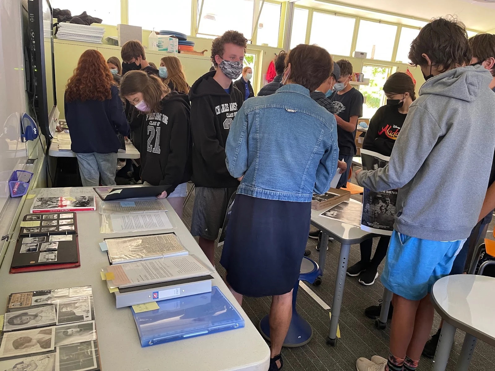 It was a fantastic day of testing some potential Holocaust curricula with students and getting their feedback. They stayed after class to peruse the letters and documents and to ask many questions.